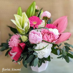 ヒマワリのブーケ ヒマワリの中からワンちゃんが覗いて いる元気の出る可愛いブーケです。
