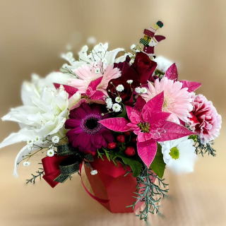 Xmasをイメージした かわいいピンク系アレンジ (サンタのピック付き) 5,000円(税込5,500) |